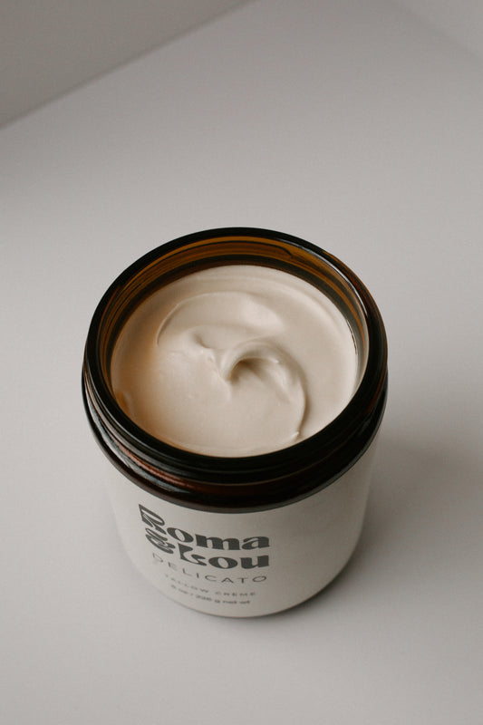 We use suet from grass fed and finished, pasture raised cattle. One cow yields approx. 6 lbs of suet. It's the most nutrient dense, prized for it's unique fatty acid profile that closely mirrors the natural fats found in our skin, making it bioidentical and highly absorbable.